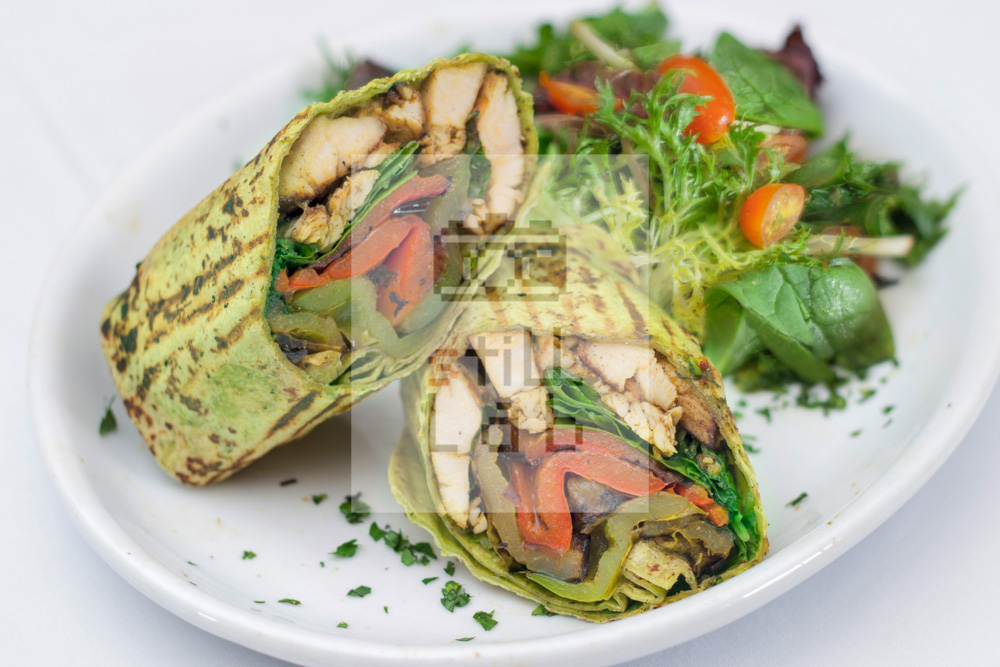 with Tomatoes, Sweet Peppers and Arugula in a Spinach Tortilla