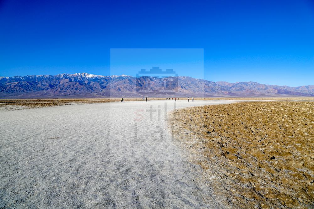 Rought sand and rock desert mountain in far sight with blue sky